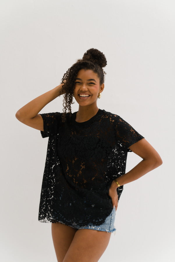 Grace meets edge in this exquisitely crafted all-lace blouse, available in timeless white or bold black. Designed to elevate any outfit, the intricate lace fabric drapes effortlessly, revealing delicate patterns with a whisper of skin beneath. A defined cotton collar frames the neckline with crisp contrast, adding structure to the softness. At the hem, feather-like lace ends create a dreamy, floating finish that moves with elegance and ease. Whether styled with denim for day or tailored pieces by night, this blouse is pure statement sophistication.